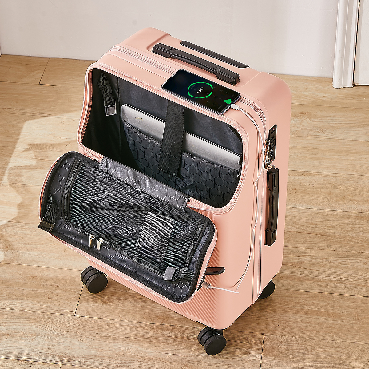 高颜值铝框行李箱多功能拉杆箱女20寸登机密码箱结实耐用旅行箱男